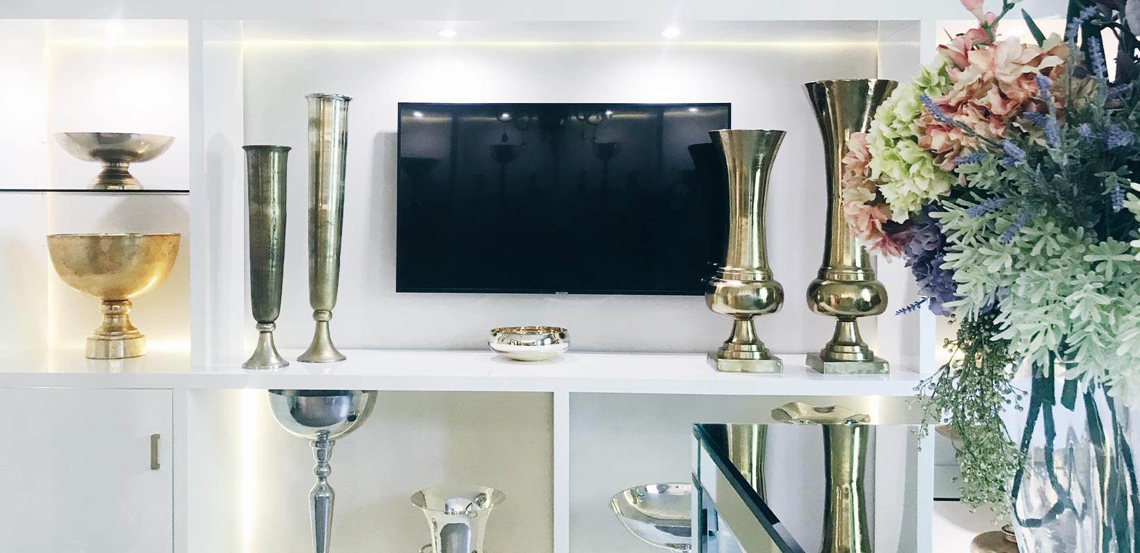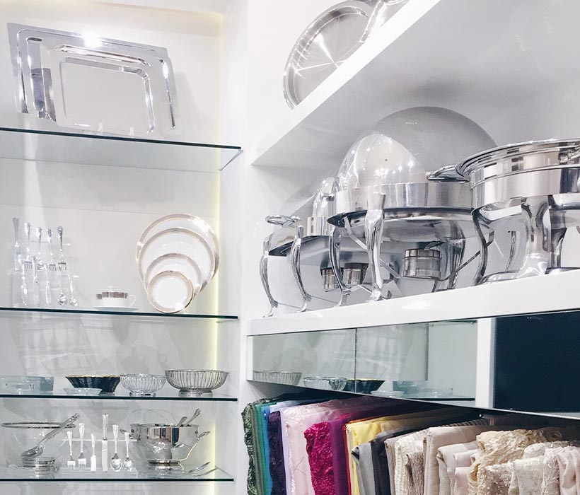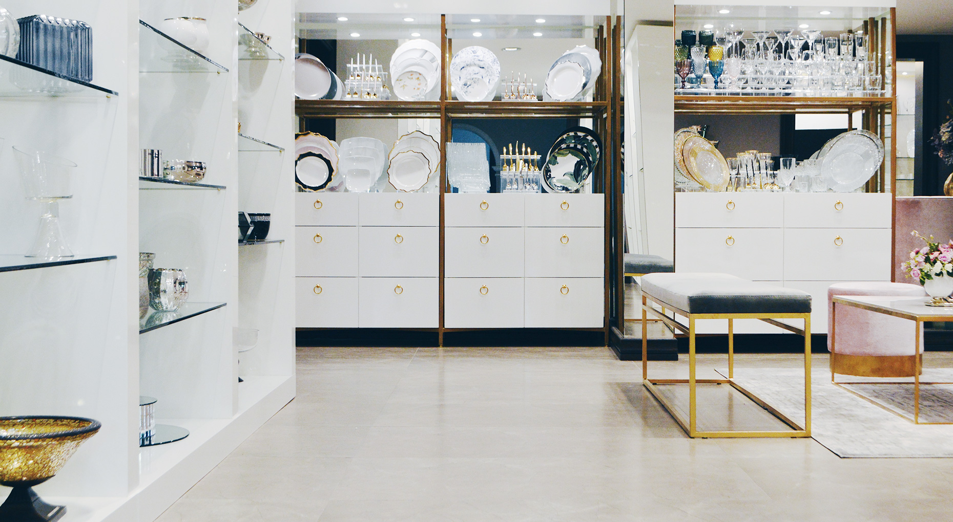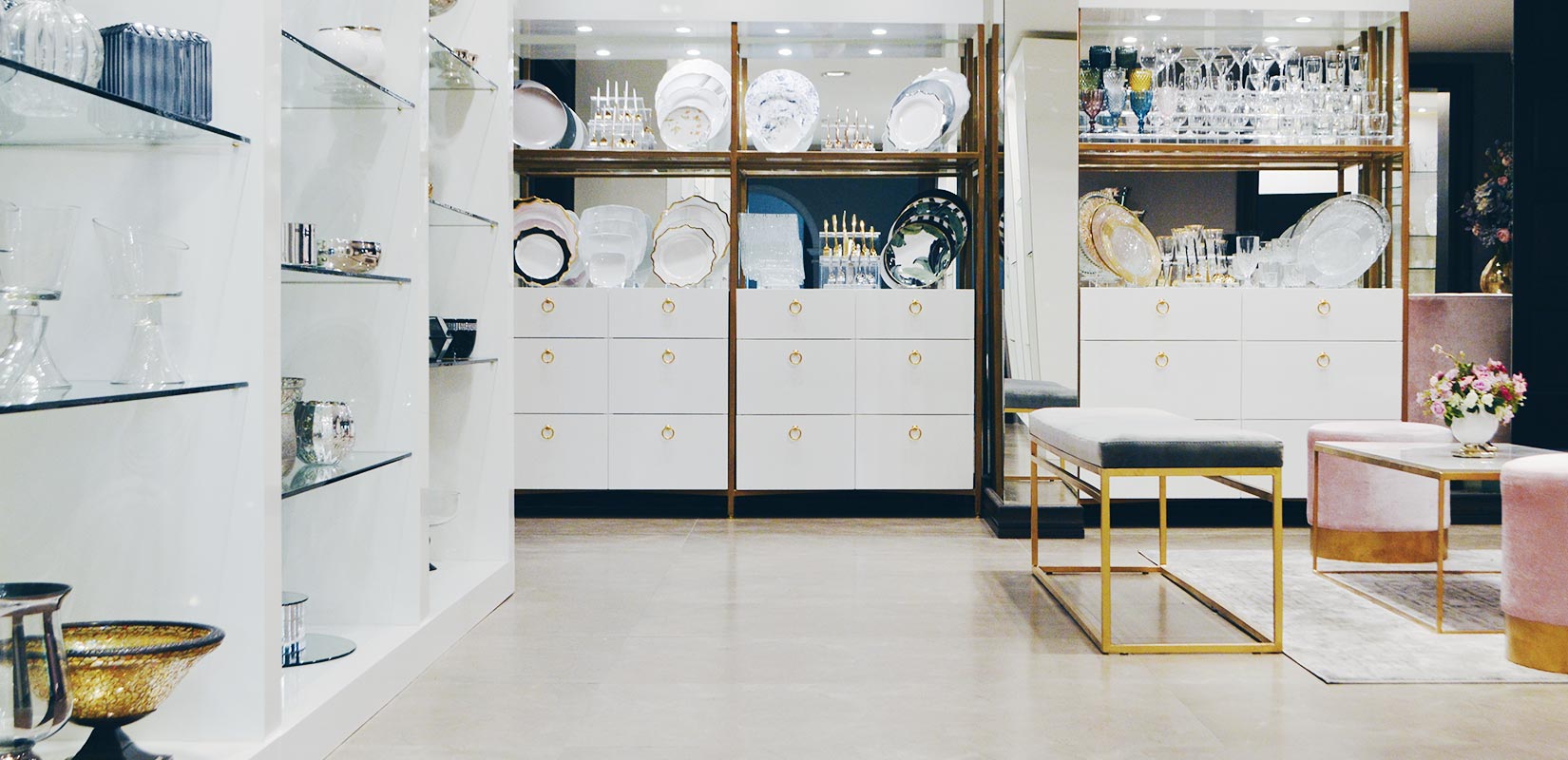 En colaboración con Armando Elizondo, logramos traer el espacio a la realidad. Por las dimensiones grandes del mobiliario de exhibición, se llevó a cabo un análisis extenso de las ingenierías involucradas. Se solucionó el armado e instalación del mobiliario utilizando materiales como madera de pino, MDF pintado en alto brillo y cristal de 9mm. Así mismo, nos encargamos de agregar la iluminación y complementar el espacio con accesorios de acero en acabado oro.